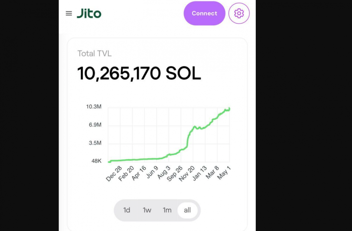 Jito, a liquid staking pool operating on the Solana blockchain, has recently achieved a significant milestone by surpassing a total value locked (TVL) of 10 million Solana (SOL). At Solana’s current price of $132.11, this amounts to a remarkable $1.32 billion.