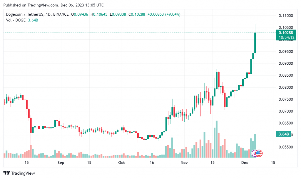 The founders aimed for a more inclusive, user-friendly cryptocurrency compared to Bitcoin, and their success is evident a decade later. DOGE enthusiasts are watching closely as the coin’s value surges nearly 10%, showing consistent growth over the past two months, boasting a remarkable 70% increase since mid-October.