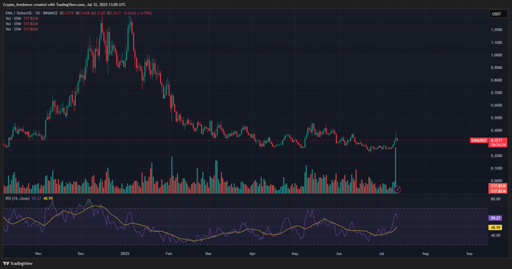 After dipping to $0.22, ENA rebounded to $0.33 (peaking at $0.37). Currently: