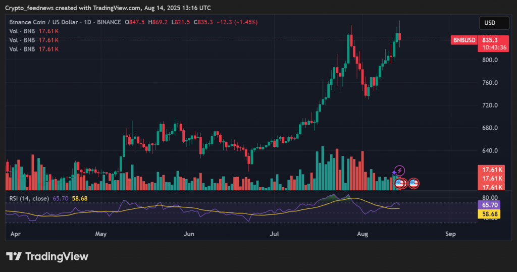 Binance Coin (BNB) has soared to a new all-time high of $864, marking a 15% gain in just seven days. This impressive rally stems from growing institutional interest, with major corporations now adding BNB to their balance sheets.