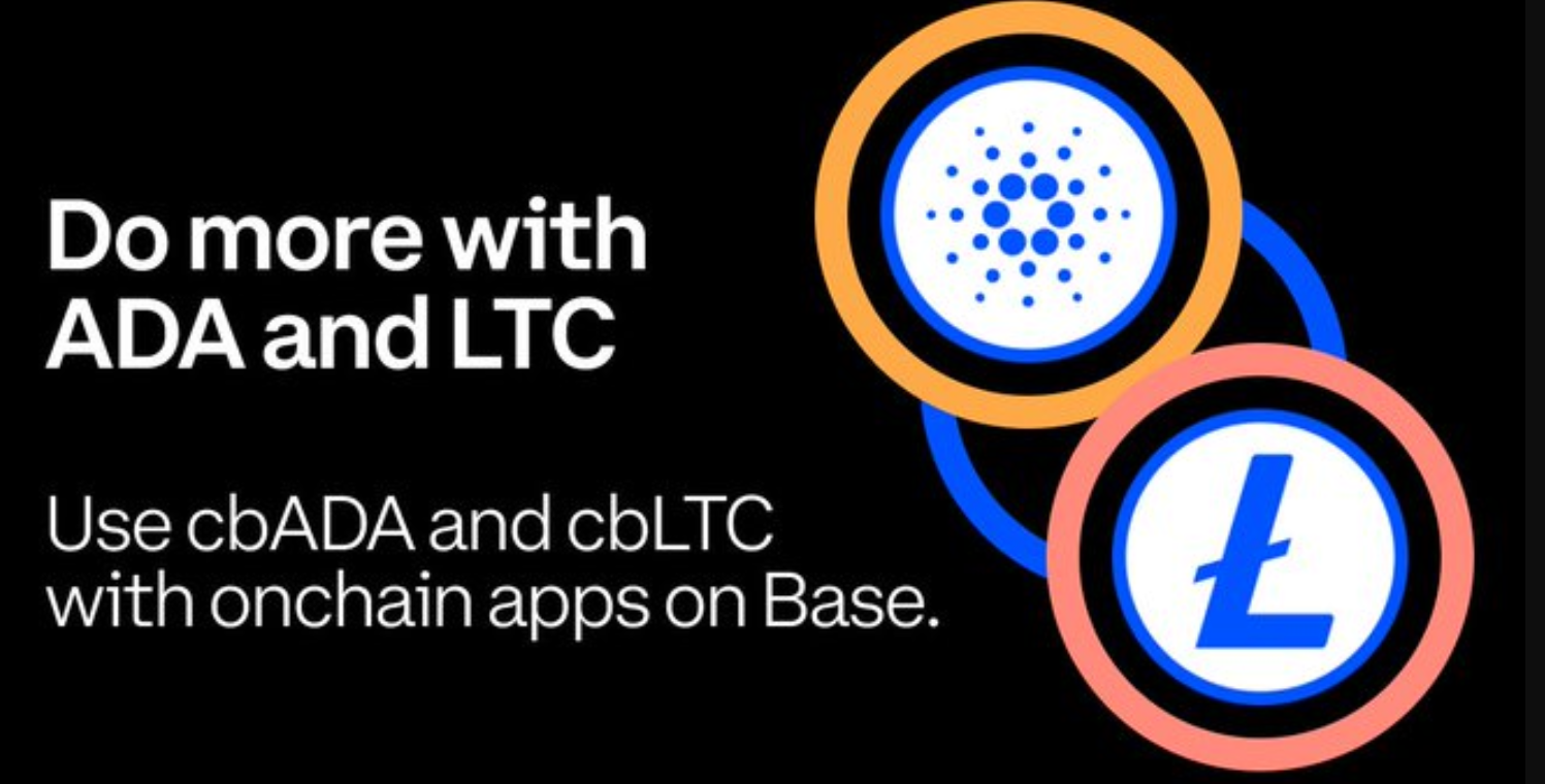 cbADA and cbLTC are now live on @base. cbADA and cbLTC are ERC-20 tokens backed 1:1 by ADA and LTC held in custody by Coinbase.