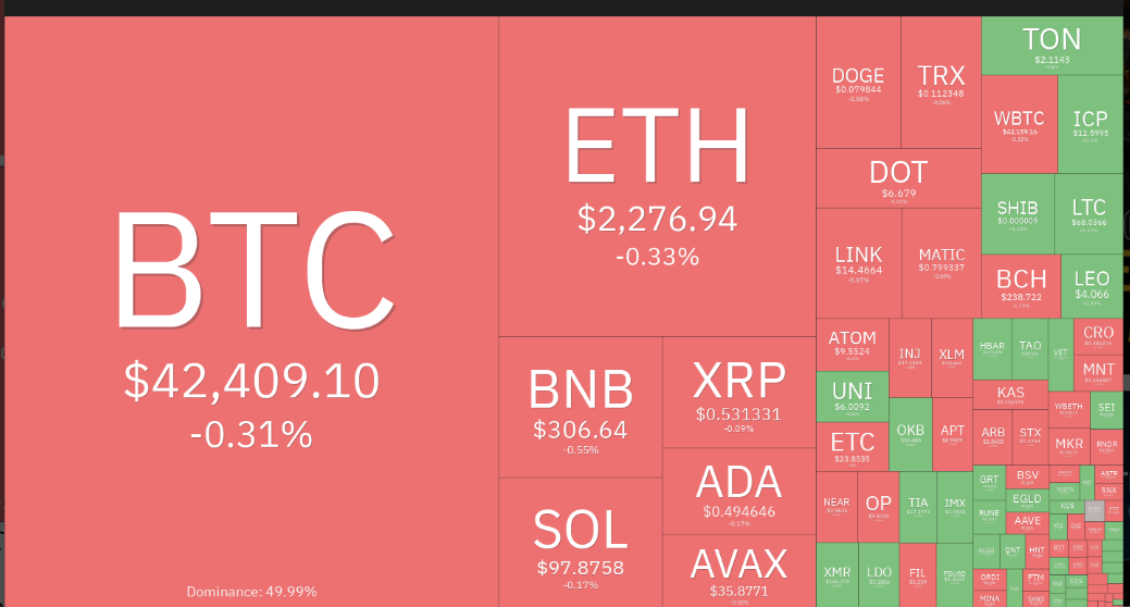 Bitcoin is exploring a range between $38,000 and $49,000, creating opportunities for altcoins like SOL, AVAX, RNDR, and SUI to potentially move higher.