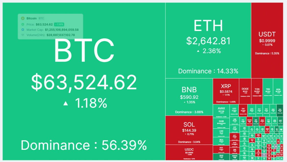 As two major crypto conferences, Token 2049 and Solana’s Breakpoint, wrapped up in Singapore, Ether (ETH) outpaced Bitcoin (BTC) in daily gains. However, despite these events, the overall crypto market remains relatively flat. ETH rose 2.6%, trading above $2,600, while BTC saw a smaller gain of 1.2%, trading above $63,700.