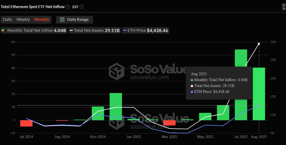 - Monthly Inflows: $4 billion into spot Ethereum ETFs.