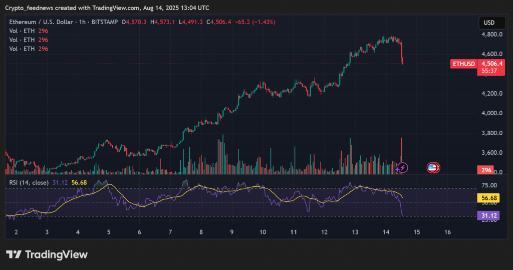 A sustained drop below $4,500 could trigger a pullback toward $4,200, potentially delaying ETH’s upward trajectory.