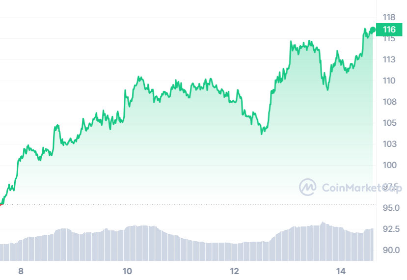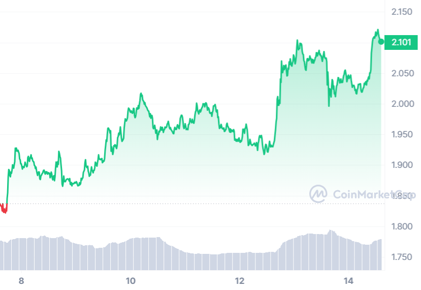 Arbitrum (ARB) is also demonstrating strength, with an 11% weekly surge and a significant increase in on-chain volumes. These indicators point to growing market trust and confidence in Arbitrum’s technology and potential trajectory.