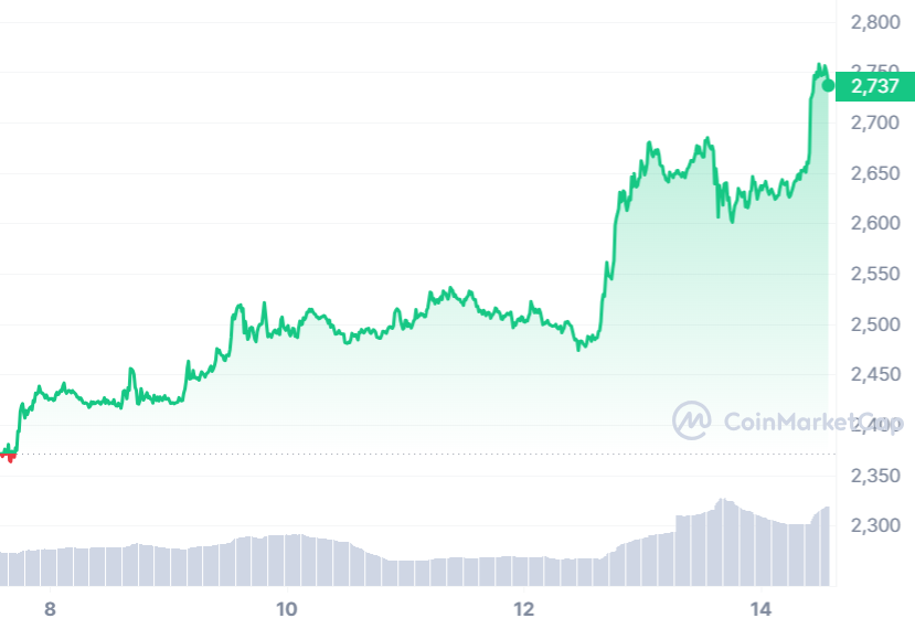 Ethereum (ETH) has particularly captured attention lately, with reports of a major whale making aggressive moves to accumulate and borrow, indicating strong confidence in the cryptocurrency’s potential for significant price growth. This strategic accumulation has coincided with a notable 13% increase in Ethereum’s price over the past week, suggesting that these moves are already yielding profits. Technical analysis also suggests a bullish sentiment in the market, with Ethereum successfully breaking through the $2,600 resistance level.