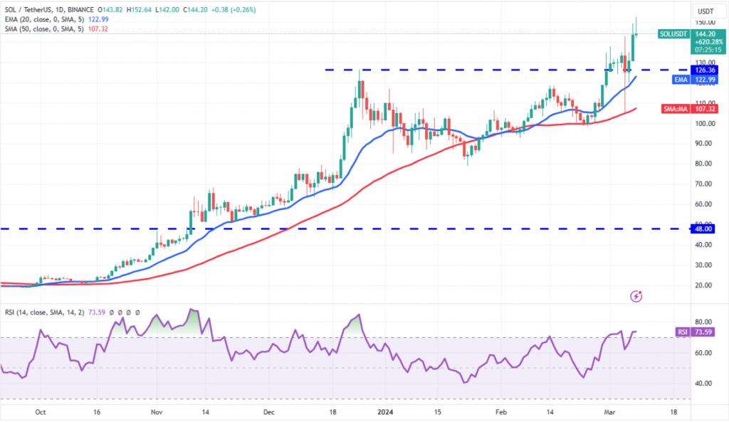 Solana Analysis: Solana’s price remains above breakout levels, with potential targets at $158. A drop below $126 could signal a reversal, potentially pulling the price to the 50-day SMA.