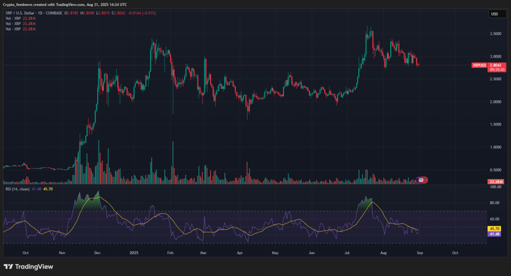 XRP has taken a hit, retreating 23% from its yearly high to trade around $2.81. While the short-term momentum has stalled, a powerful combination of booming ecosystem growth and surging institutional demand suggests this dip is a prime buying opportunity before a significant September rebound.
