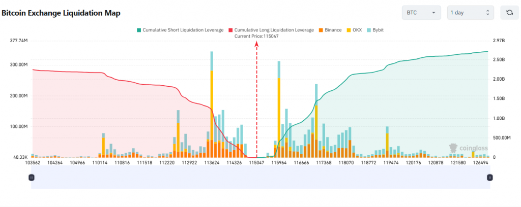 Derivatives data reveals a formidable barrier. A $3 billion cluster of short positions is concentrated at the $117,800 price level. This represents nearly half of all active downside bets.