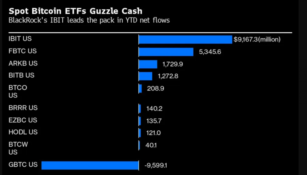 Bitcoin ETFs Surge: BlackRock Leads Inflows as Cryptocurrency Hits All-Time High