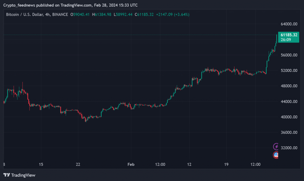 The cryptocurrency’s value has already soared more than 40% since the beginning of the year, propelled partly by the successful introduction of US exchange-traded funds (ETFs) holding Bitcoin. These ETFs have attracted over $6 billion in investments since their launch on January 11. Bitcoin last reached $60,000 in November 2021, following its peak near $69,000 earlier that same month.