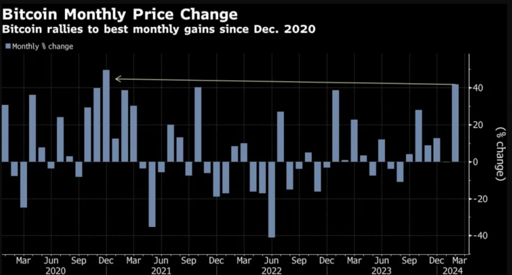 An upcoming reduction in Bitcoin’s supply growth, known as the halving, is contributing to the positive sentiment. This factor, coupled with an ongoing rally that has ignited speculative interest in various other tokens like Ether and Dogecoin, is fueling what some describe as a “fear of missing out” (FOMO) rally.