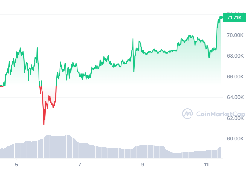 Last week marked a historic milestone as the leading cryptocurrency soared past the $70,000 mark for the first time ever. Bitcoin (BTC) continued its upward trajectory, breaching $71,000 during Monday’s Asian trading hours.