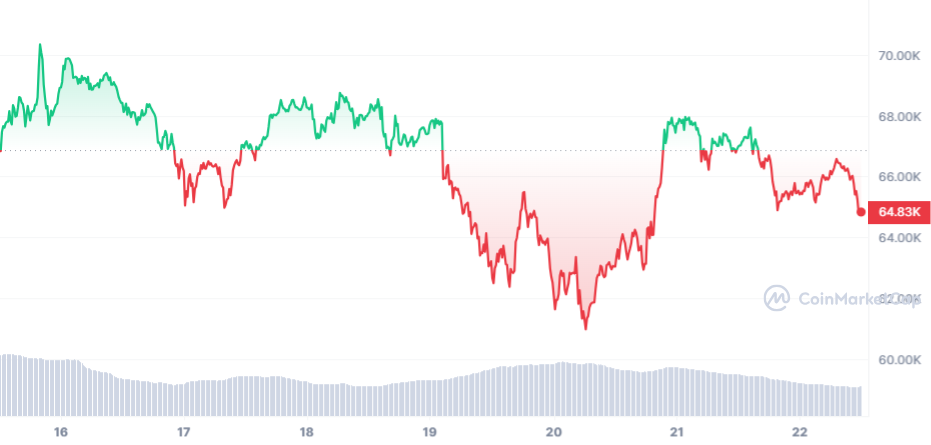 The cluster of 10 spot Bitcoin ETFs is witnessing its largest weekly outflow since their launch on January 11. Concurrently, Bitcoin, the world’s largest cryptocurrency, is experiencing one of its toughest weeks this year, with a 4% drop. Its value stands at $65,434 as of 9:48 a.m. Friday in London.
