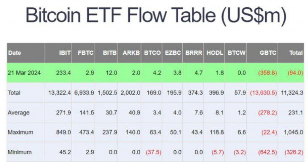 From Monday through Thursday, a net $836 million was withdrawn from ETFs, reflecting outflows from the Grayscale Bitcoin Trust and a decrease in subscriptions for similar offerings from companies like BlackRock Inc. and Fidelity Investments.