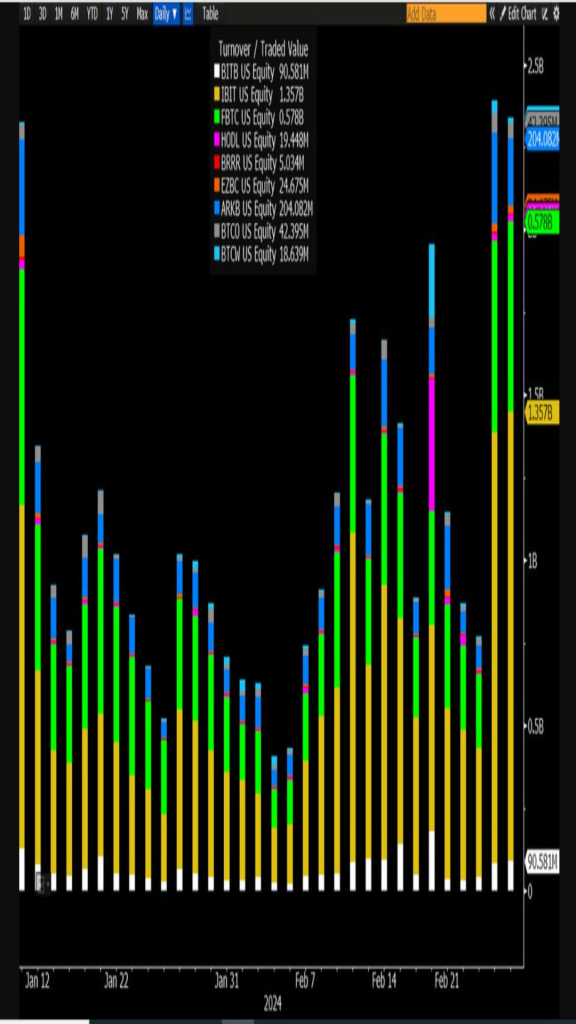 A key concern has been the limited supply of Bitcoin available for purchase in the open market, with over half of all Bitcoin tokens in circulation remaining dormant for more than two years, as per Glassnode data. However, some experts, like Stephane Ouellette, CEO of digital-asset platform FRNT Financial, suggest that fears of a liquidity crisis may be exaggerated, as short-term holders have begun offloading positions.*