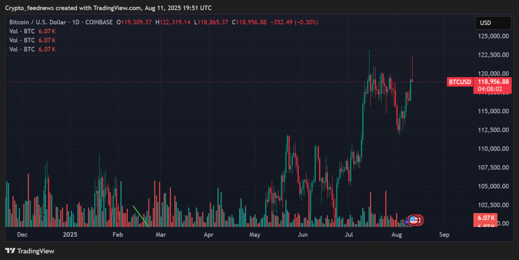 ๐ย BTC briefly touched $119,800ย before pulling back