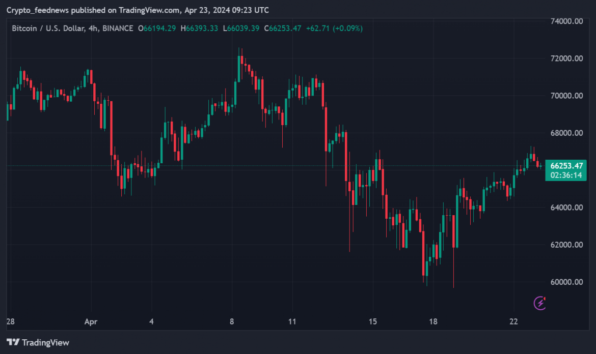Following its quadrennial halving event over the weekend, which halved the rate of new bitcoin issuance, the leading cryptocurrency saw a modest increase of over 3% in the past 24 hours, reaching a recent price of $66,500. Meanwhile, Ether remained relatively stable around $3,200, showing a more modest 1.5% gain over the same period.