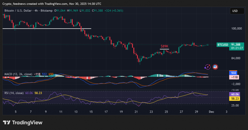 A crucial gauge of American institutional sentiment has just flashed green for the first time in a month. The Coinbase Premium Index (CBPI), which tracks the price difference for Bitcoin on Coinbase versus the global average, has turned positive. This indicates that BTC is now trading at a premium on the US-based exchange, a strong signal that American investors are buying more aggressively than the rest of the world. This shift comes as Bitcoin stages a powerful rebound from its November 21 low below $81,000, now trading firmly above $91,000. When US capital flows in, it often leads the market.