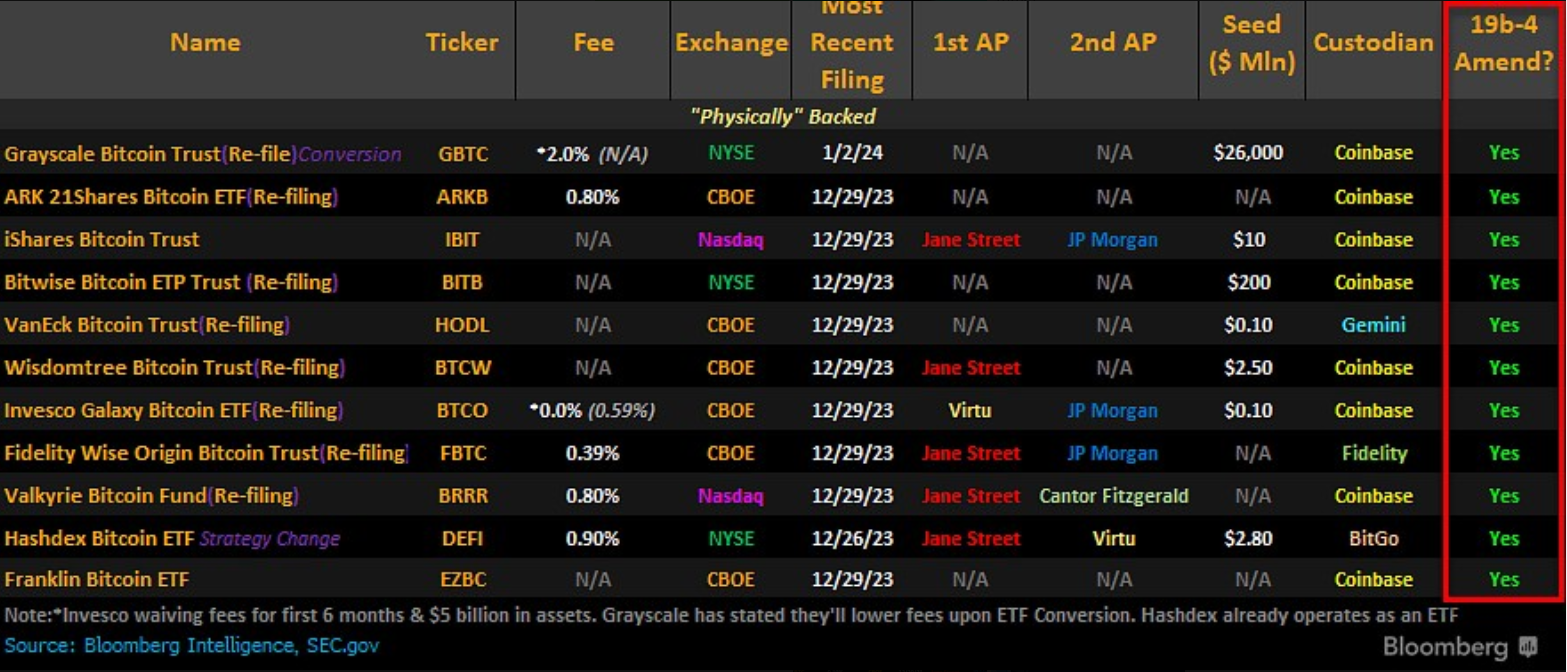 Concurrently, regulators collaborated with exchanges to refine 19b-4 filings, delineating rule changes essential for launching spot bitcoin ETFs. On Friday, exchanges revised 11 of these filings.
