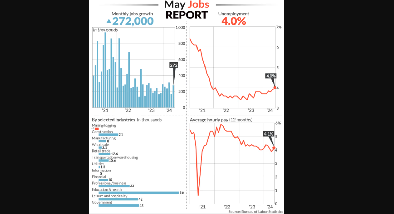 According to the Bureau of Labor Statistics, the U.S. job market added 272,000 positions in May, a significant increase from the 175,000 jobs added in April. Despite the job growth, the unemployment rate rose to 4%, up from 3.9% in the previous month and higher than anticipated.