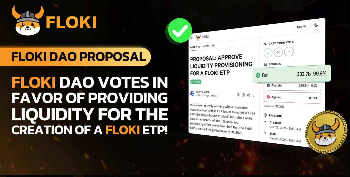Floki (FLOKI) DAO members have unanimously agreed to allocate 16.3 billion tokens from the community buyback wallet as liquidity for an upcoming exchange-traded product (ETP). Scheduled to launch in Q1 2025, the Floki ETP will provide European investors access to the popular meme coin within the traditional finance market.