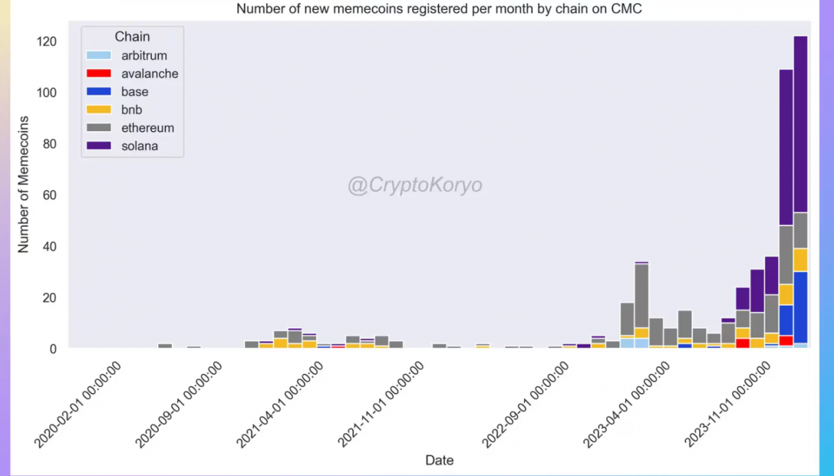 The demand for meme coins is surging, according to a crypto analyst’s insights. In April, CoinMarketCap recorded an all-time high of 138 memecoins, marking a significant increase from the 18 registered in April 2023. Despite the sluggish performance of bitcoin (BTC), the meme coin craze remains robust.