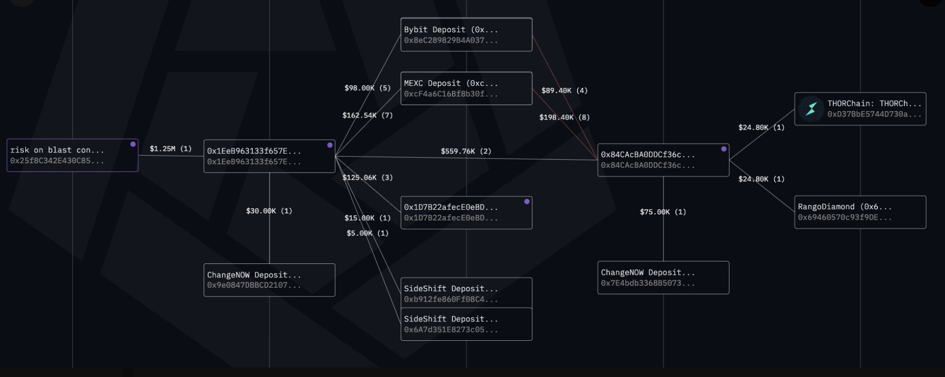The incident involved RiskOnBlast, purportedly a gambling and exchange platform, which raised over $1 million in a seed round and participated in Blast’s Big Bang competition. Despite expectations, RiskOnBlast vanished suddenly, with all its social media accounts disappearing. The anonymous team behind it seemingly absconded with funds from over 750 wallets, redirecting substantial amounts to various services and exchanges.