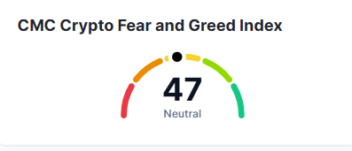 The data reflects the new mood. The Crypto Fear & Greed Index has dropped from 49 to 45, signaling a swift move toward fear and caution among traders.