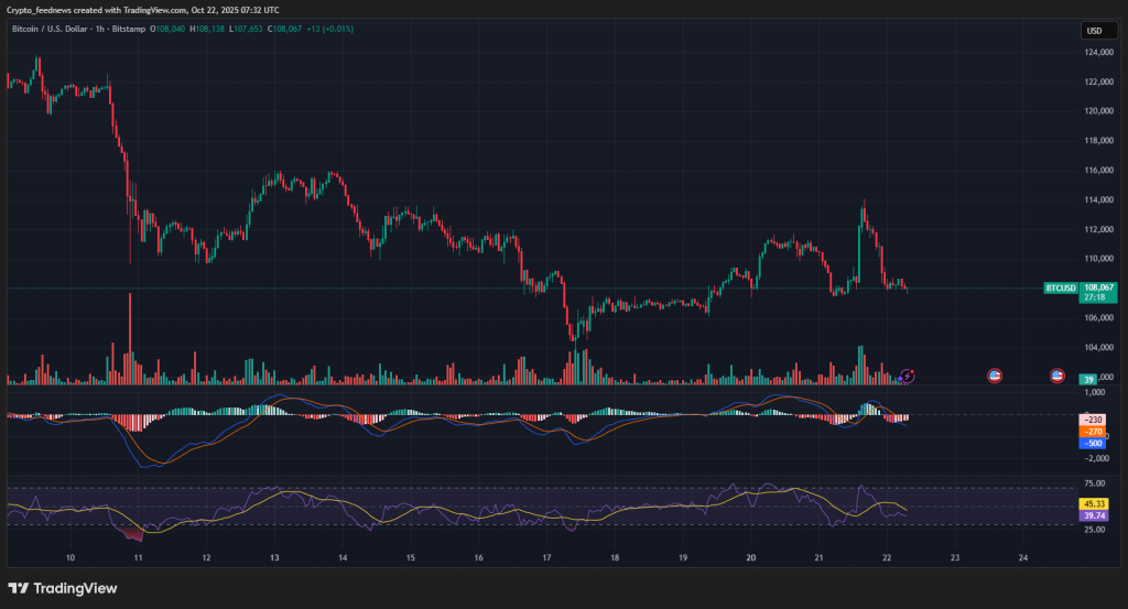 As the crypto rally fades, critical support levels are being tested. Bitcoin now battles to hold $108,500 while Ethereum struggles at $3,850. All eyes turn to the October 24 U.S. inflation report and the Federal Reserve’s meeting later this month, which will heavily influence whether liquidity conditions improve.