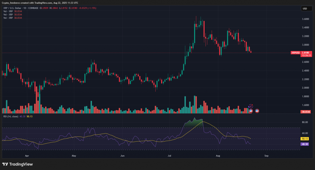 Currently, XRP is trading in a range between $2.70 and $3.30. The key level to watch is $2.70; a rebound from this support could form a double bottom pattern—a classic technical indicator that often signals the end of a downtrend.