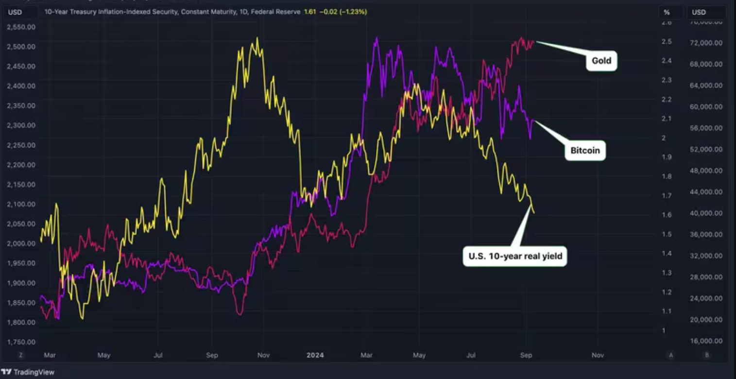 Experts link the surge in gold prices to a shift in monetary policy and lower real yields on U.S. government bonds. As yields drop, investors often rotate into riskier assets like Bitcoin and tech stocks. According to André Dragosch from ETC Group, the decoupling of gold from U.S. real yields hints at future economic changes. The European Central Bank has already cut rates, and the U.S. Federal Reserve is expected to follow, which could push Bitcoin and other assets higher.