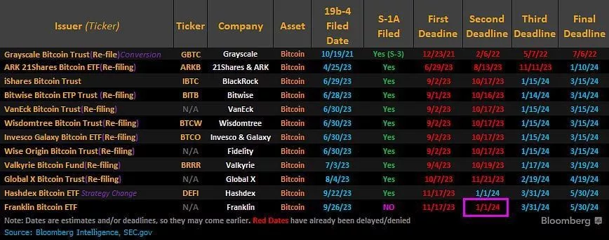 Guess who’s making moves? Franklin’s got their updated prospectus in for that spot Bitcoin ETF. Analysts are betting big that the U.S. Securities and Exchange Commission (SEC) might just greenlight a bunch of these spot bitcoin ETFs in a row. The rush is on, everyone’s on the edge of their seats, ’cause being the first one approved means snagging a big piece of the investor pie. It’s all about that early bird advantage!